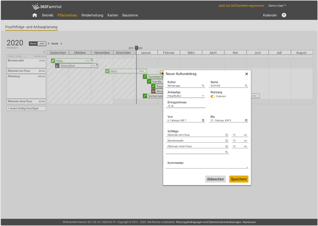 Una volta inserita la rotazione delle colture nel tuo modulo, è possibile acquisire i dati di pianificazione da altri moduli di pianificazione.
