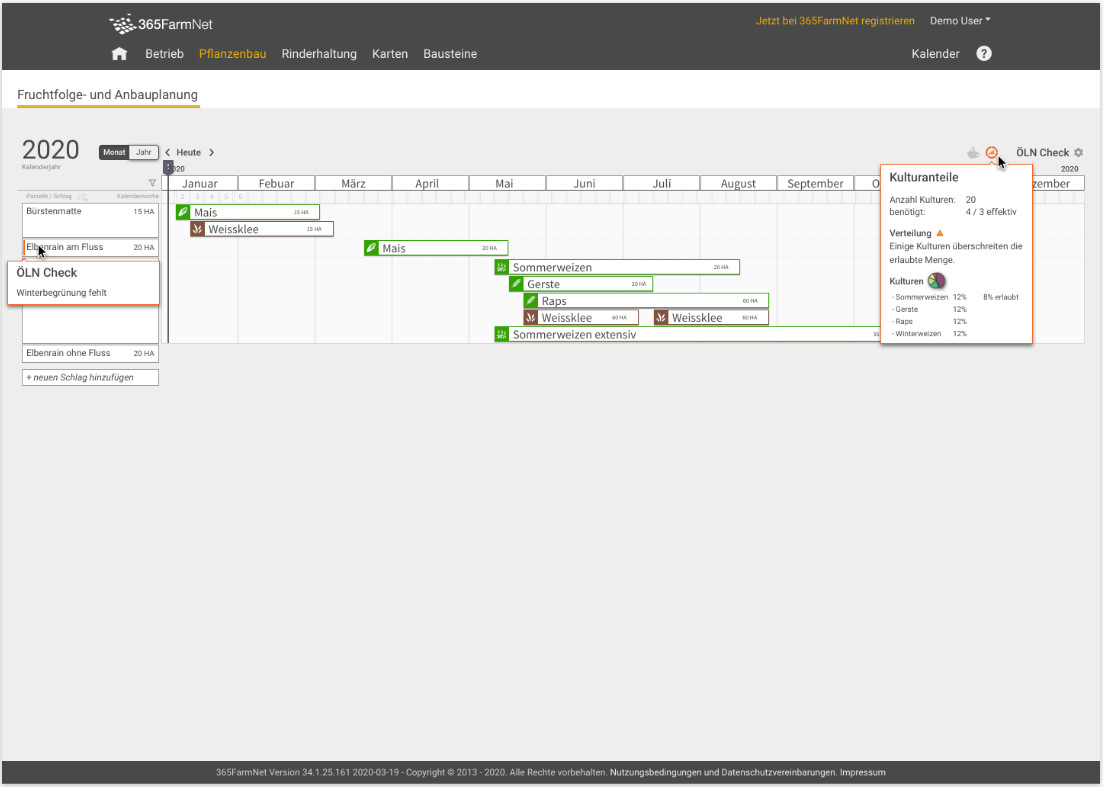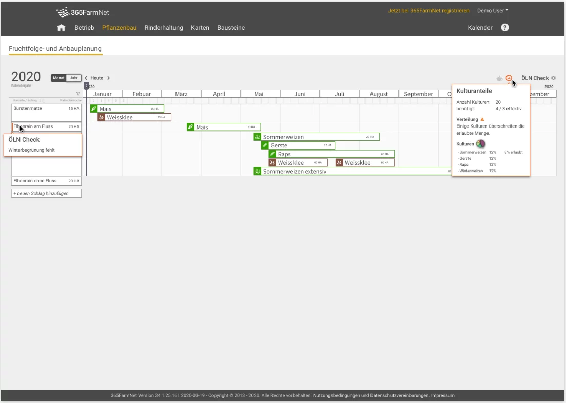 Pianificazione continua della rotazione delle colture su tutte le particelle per un determinato arco temporale